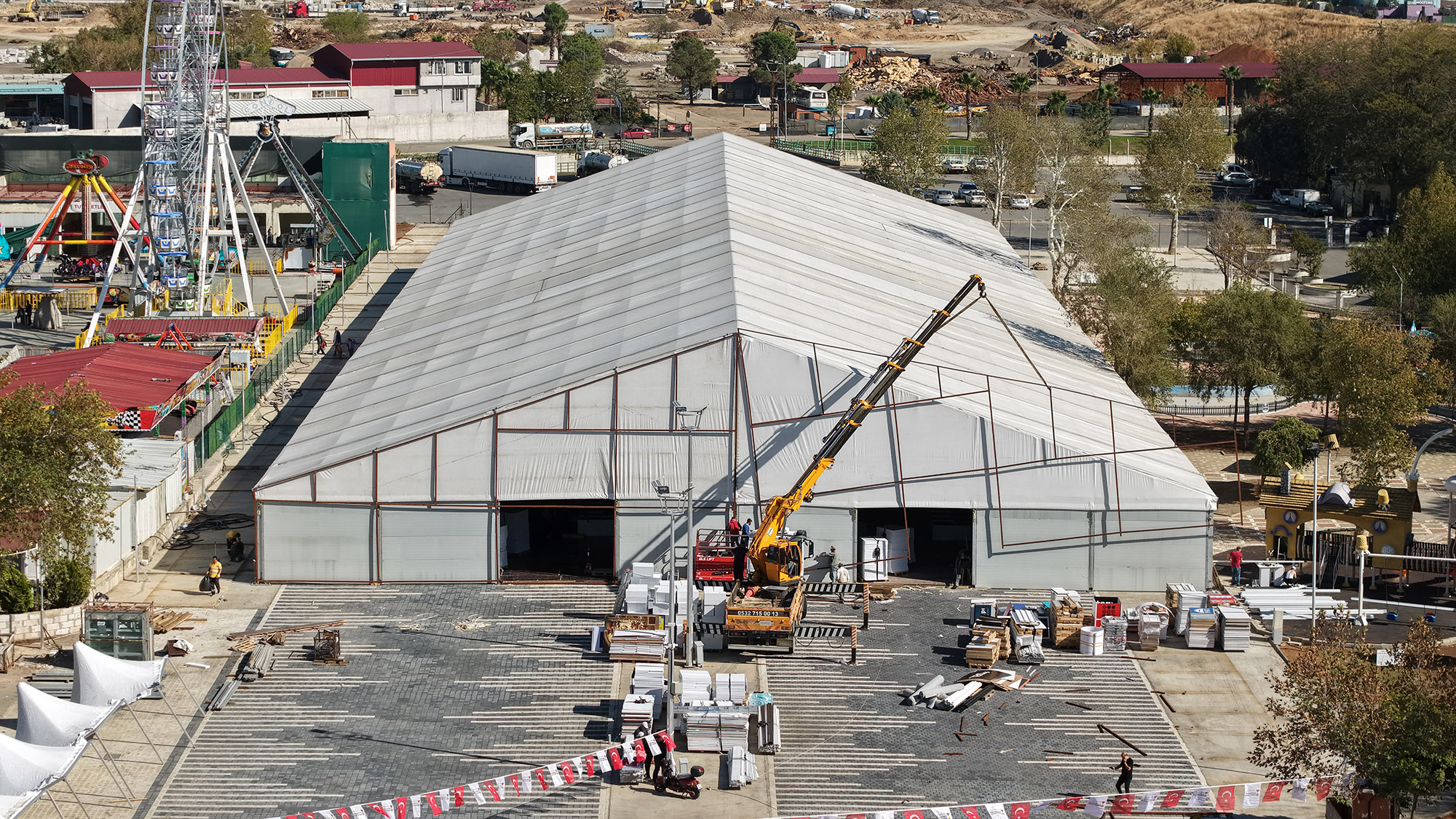 Ekipler, fuar alanında çevre düzenlemesi, sahne kurulumu, aydınlatma ve etkinlik çadırlarının montajını büyük ölçüde tamamladı.