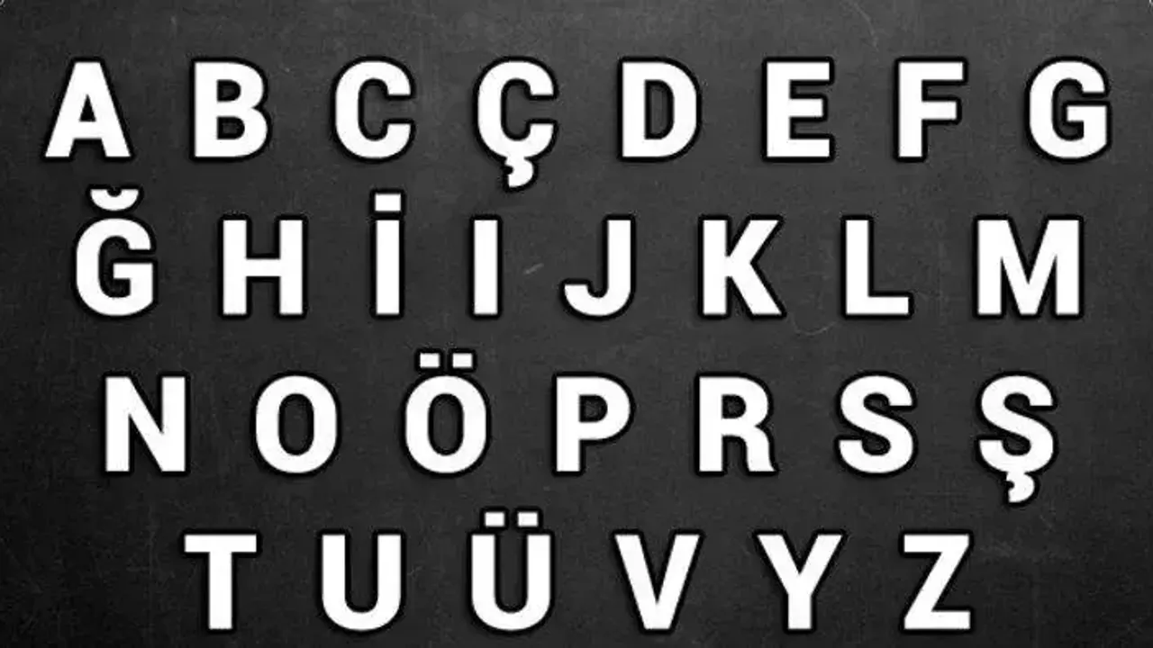 A, B, C, Ç, D, E, F, G, Ğ, H, I, İ, J, K, L, M, N, O, Ö, P, R, S, Ş, T, U, Ü, V, Y, Z şeklinde devam eder.