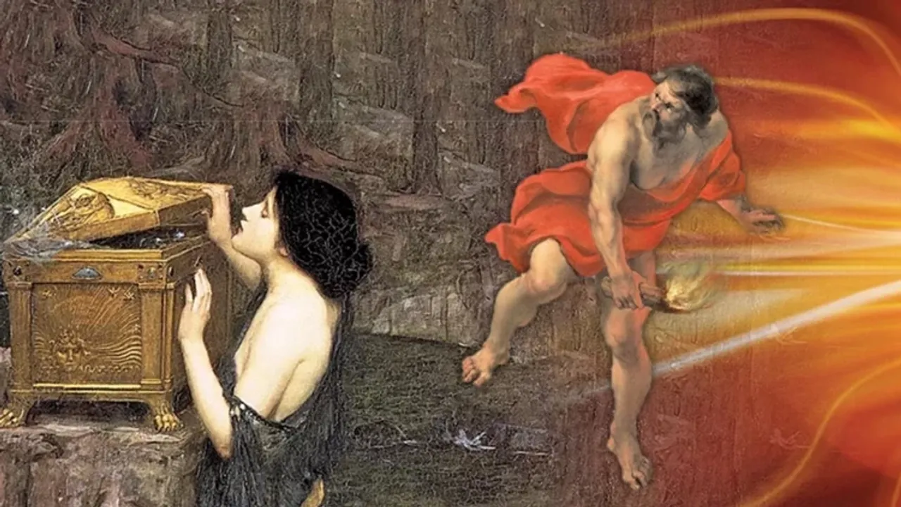 Pandora, tanrılar tarafından yaratılan ilk kadın olarak anlatılır ve kendisine asla açmaması söylenen bir kutu verilir. Ancak merakına yenik düşerek kutuyu açtığında, hastalıklar, acılar, savaşlar ve felaketler dünyaya yayılır.