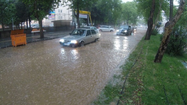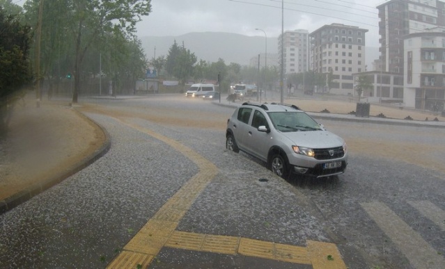 Kahramanmaraş'ta şiddetli dolu ve sağanak - Kentte etkili olan dolu ve sağanak nedeniyle bir okulun istinat duvarı çöktü, kent yaşamını da olumsuzu etkiledi