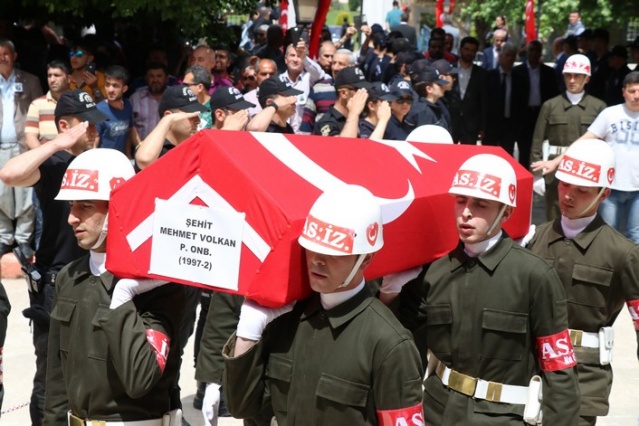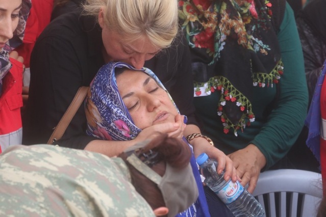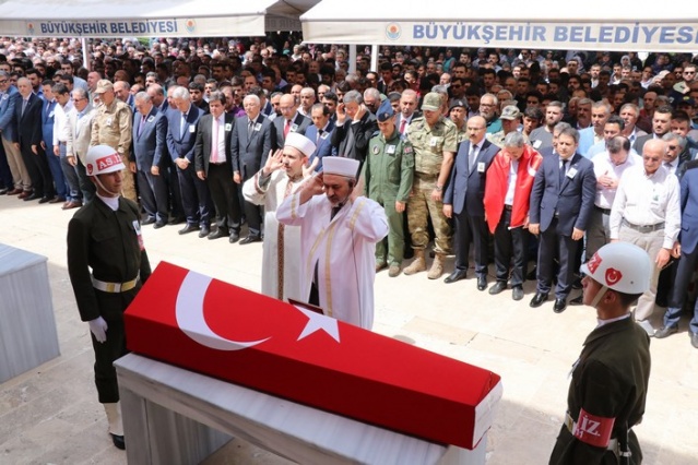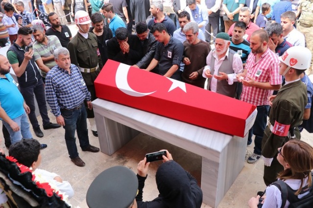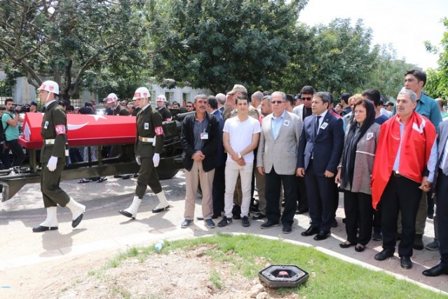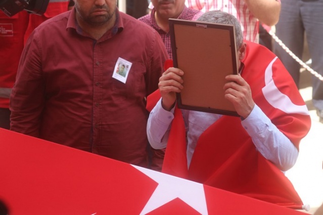 Sırtına Türk bayrağı geçirip şehit oğlunu son yolculuğuna uğurladı