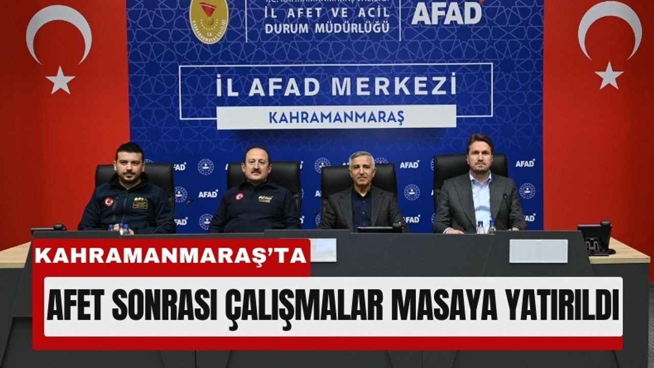 Afet Koordinasyon Merkezi’nde gerçekleştirilen toplantıda, depremlerin ardından Kahramanmaraş genelinde sürdürülen faaliyetler, devam eden projeler ve önümüzdeki süreçte atılması planlanan adımlar detaylı şekilde değerlendirildi.