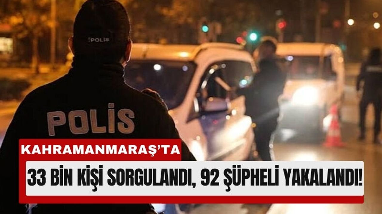 Kahramanmaraş İl Emniyet Müdürlüğü Asayiş Büro Ekipleri tarafından gerçekleştirilen uygulamalarda 33 bin 679 kişi sorgulandı. Yapılan kontrollerde çeşitli suçlardan aranan ve haklarında işlem yapılan 92 kişi gözaltına alındı. Bu kişilerden 20’si adli makamlara sevk edilerek tutuklandı.