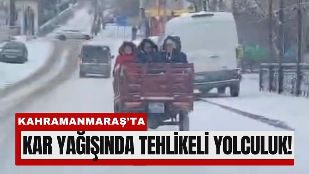 Ancak ilçede kaydedilen başka bir görüntü, güvenlik endişelerini gündeme taşıdı. Karla kaplı yolda ilerlemekte zorlanan sepetli bir aracın üzerinde üç çocuğun yolculuk yaptığı anlar cep telefonu kameralarına yansıdı.