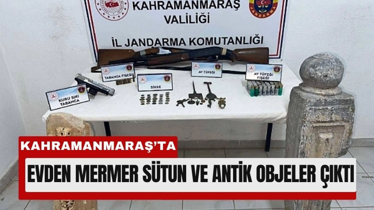 Adreslerde yapılan aramalarda, tarihi yapılara ait olduğu değerlendirilen mermer sütun parçaları, antik dönemlerden kalma madeni paralar ve çeşitli tarihi objeler ele geçirildi. Ayrıca ruhsatsız silah ve mühimmat da güvenlik güçlerince muhafaza altına alındı.