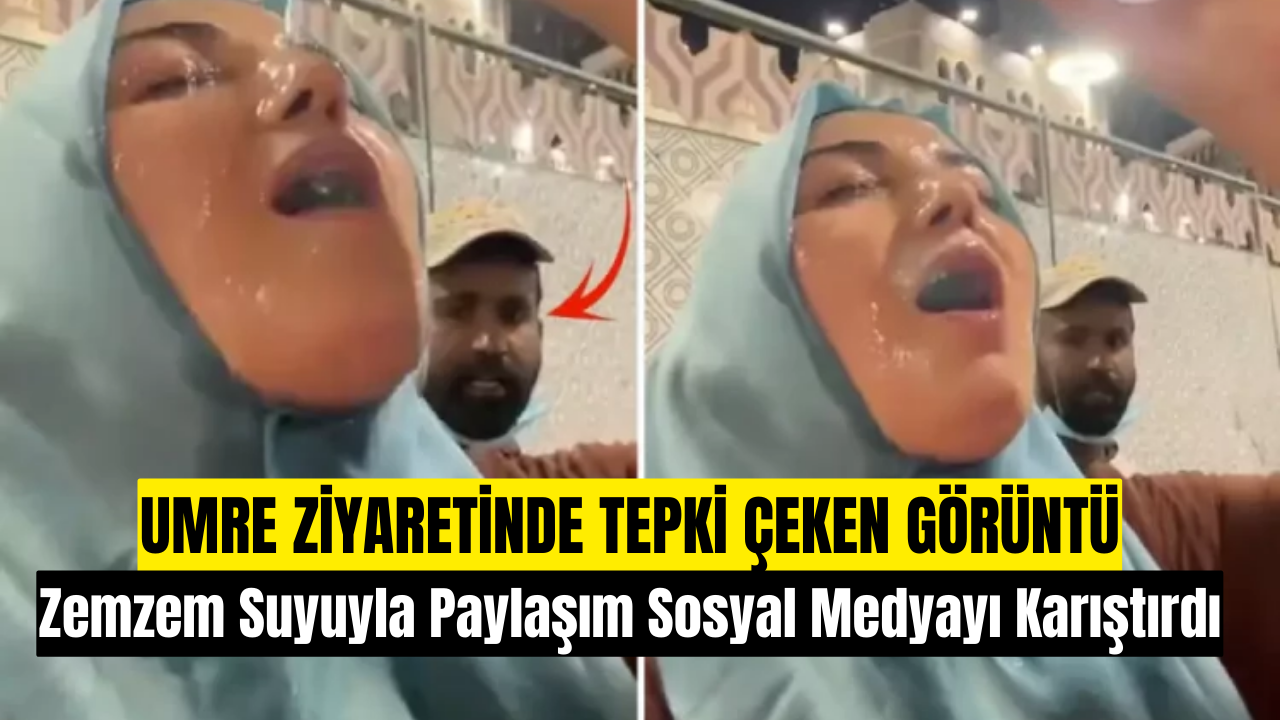 Umre ibadeti sırasında kaydedilen ve kısa sürede sosyal medyada yayılan bir video, kamuoyunda geniş yankı uyandırdı. Görüntülerde bir kadının, kutsal mekânda zemzem suyunu yüzüne döktüğü anları cep telefonu kamerasıyla kayda alarak TikTok hesabında paylaştığı görülüyor.