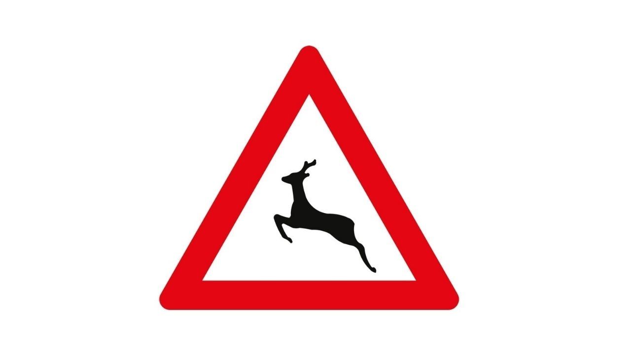 “Vahşi hayvanlar geçebilir” uyarı levhasının üzerinde geyik figürü yer alır. Geyik, özellikle ormanlık ve kırsal bölgelerde yola aniden çıkabilen vahşi hayvanları temsili olarak simgeler.