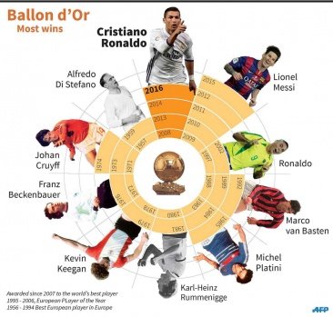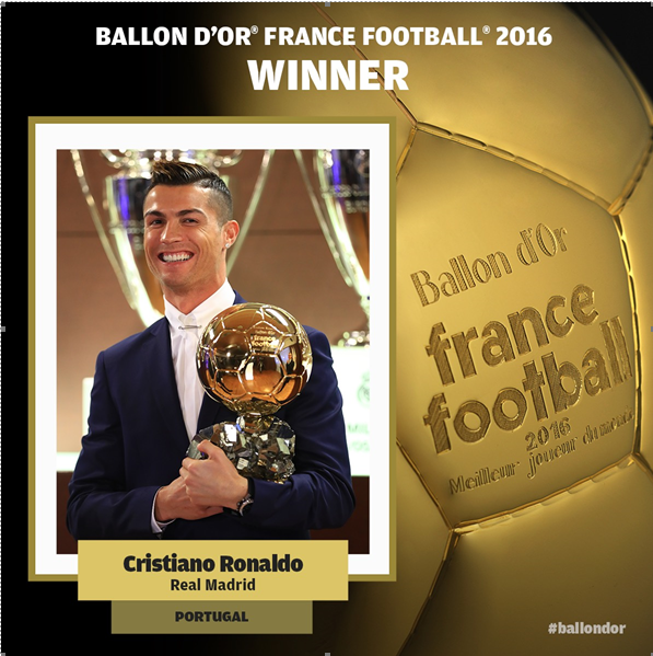 İsviçre'nin Zürih kentinde düzenlenen törende, FIFA Ballon d'Or (Altın Top) ödülünün sahibi Real Madrid'de forma giyen Portekizli yıldız futbolcu Cristiano Ronaldo oldu.