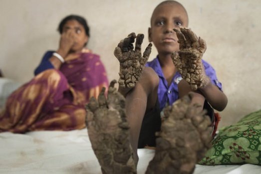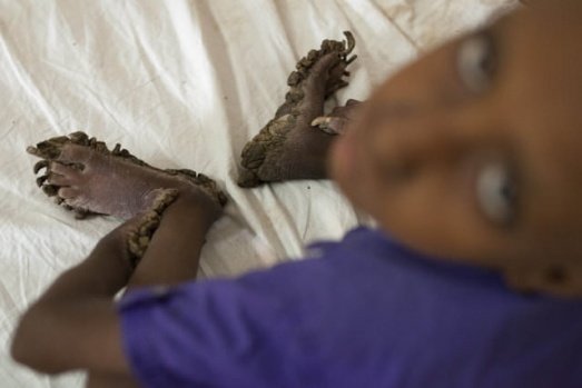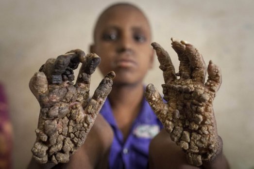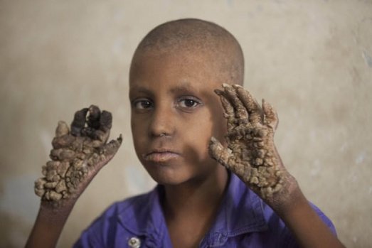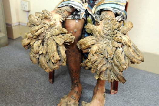 Mirror'un haberine göre; Bangladeş'in Thakurgaon şehrinde yaşayan 7 yaşındaki Ripon Sarker, ne ellerini ne de ayaklarını kullanabiliyor. Yemeğini bir başkasının yardımı olmadan yiyemiyor, yürüyemiyor. 'Epidermodysplasia Verruciformis' hastalığı yüzünden adeta ağaç adama dönüşüyor.