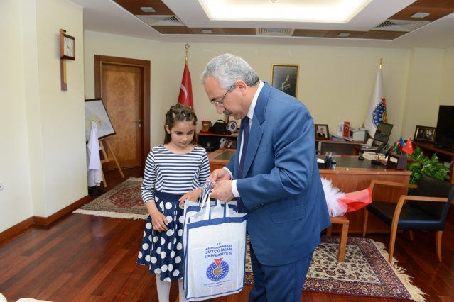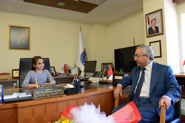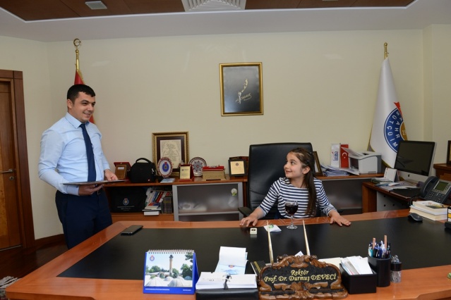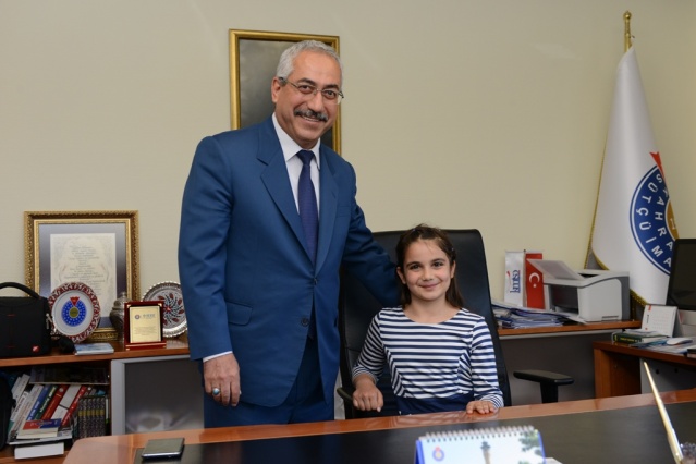 Kahramanmaraş Sütçü İmam Üniversitesi (KSÜ) Rektörü Durmuş Deveci 23 Nisan’da koltuğunu Dulkadiroğlu İlkokulu 4. sınıf öğrencisi Ayşe İrem Ağyar’a devretti.