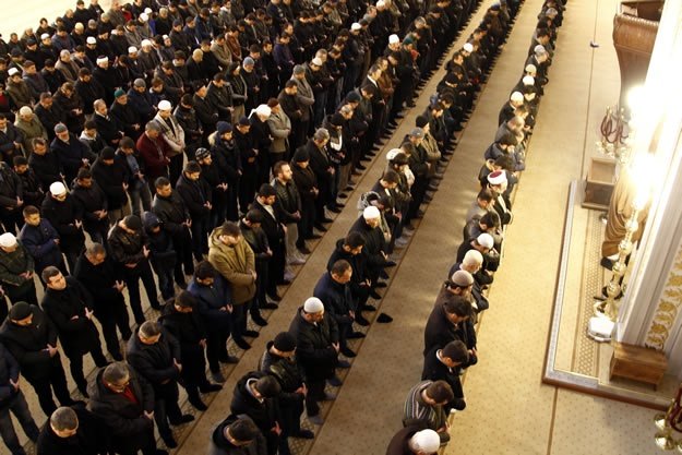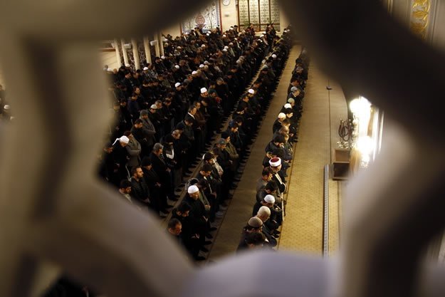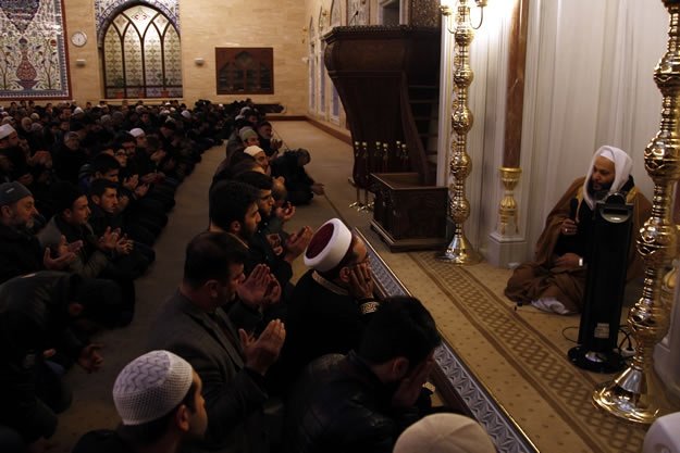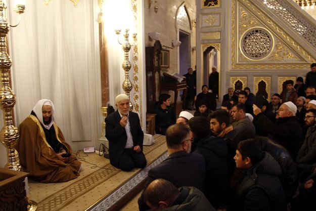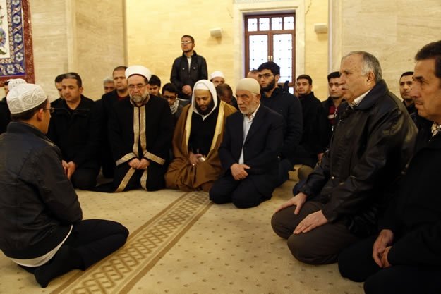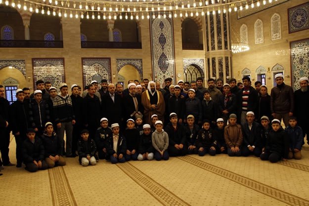 Kahramanmaraş'ta Abdulhamithan Camisi'nde Mescid-i Aksa imamı Yunus İkrimavi'nin kıldırdığı sabah namazı sonrası eller, Müslümanların huzuru ve İslam dünyasında akan kanların dinmesi için semaya kalktı. İl Müftüsü Muhammed Gevher'in (sağ2) de katıldığı programda İkrimavi, Abdulhamithan Camisi Kur'an Kursu'nda hafızlık eğitimi alan öğrencilerden Kur'an tilaveti dinleyip sohbet etti.