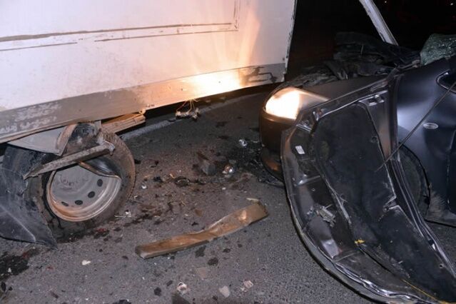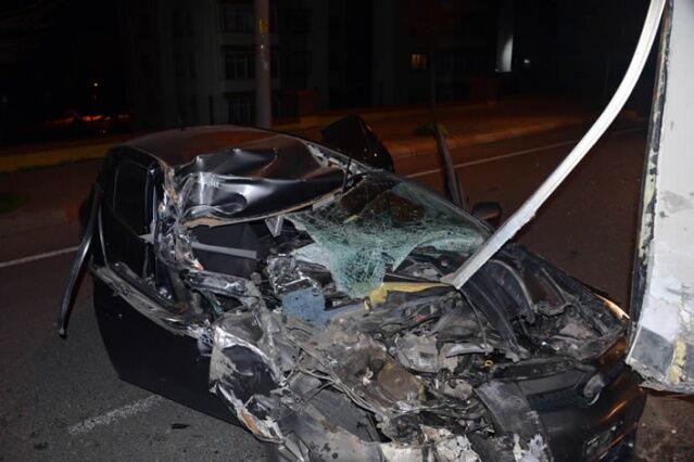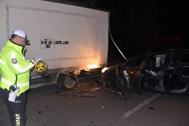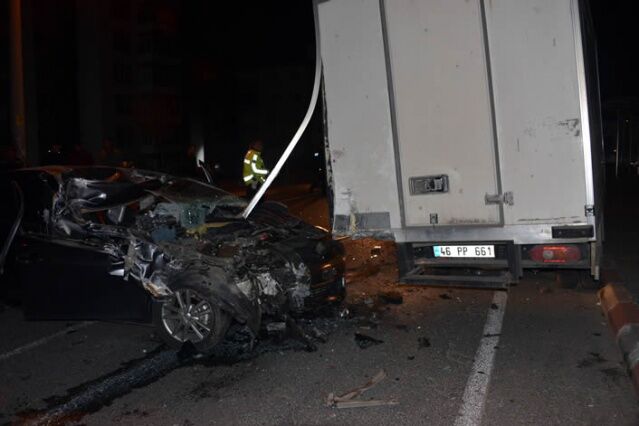 KAHRAMANMARAŞ'ta kontrolden çıkan otomobil park halindeki kamyonete arkadan çarptı. Hurdaya dönen otomobilin alkollü sürücüsü, kazayı hafif sıyrıklarla atlattı.
