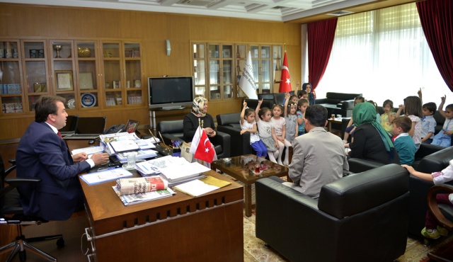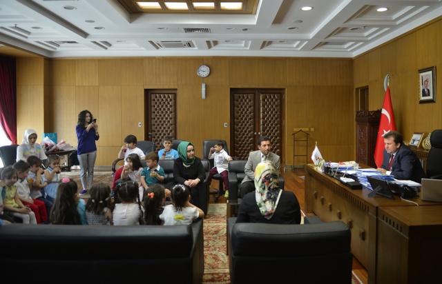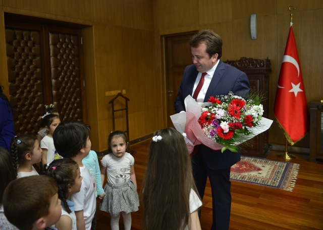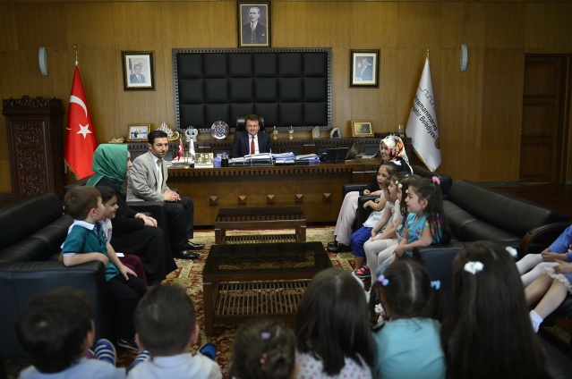 Nene Hatun Anaokulu öğrencileri Kahramanmaraş Büyükşehir Belediye Başkanı Fatih Mehmet Erkoç’u ziyaret ederek bir buket çiçek takdim ettiler.