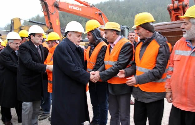 Vali Mustafa Hakan Güvençer (sağ1), Ünal ve Yıldırım onuruna, Türkiye'nin orman varlığının artırılmasına yönelik çalışmalar kapsamında, ağaçlandırma sahalarında dikilen 20 bin fidan levhalarını takdim etti.