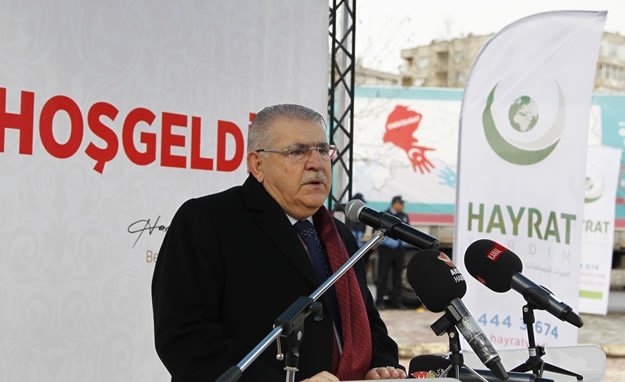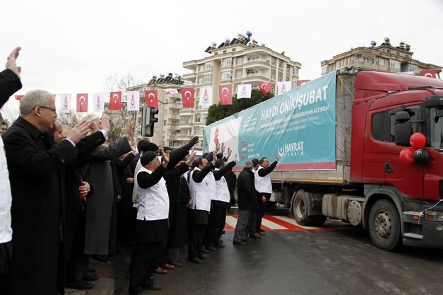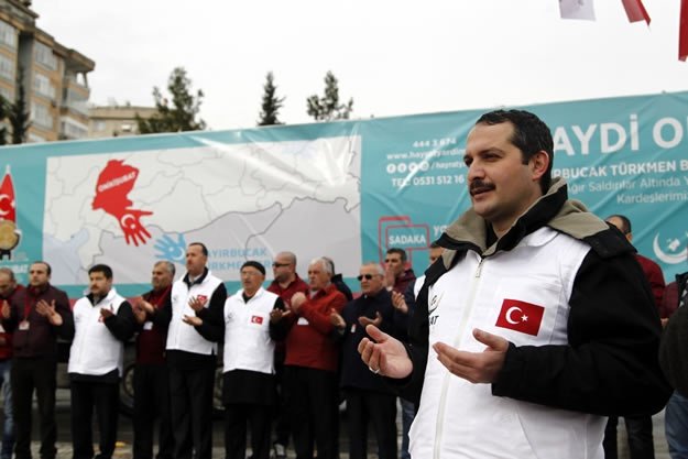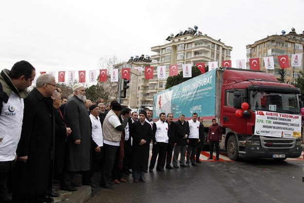 Kahramanmaraş'ta, Onikişubat Belediyesi ile Hayrat İnsani Yardım Derneğinin işbirliğinde Bayırbucak Türkmenleri için toplanan yardım malzemeleri, Mehter Marşı ve dualarla yola çıktı.