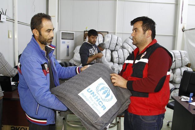 Ülkelerindeki iç savaştan kaçarak geldikleri Kahramanmaraş'ta çadır kentte kalan Suriyeli sığınmacılara, battaniye, kıyafet ve ayakkabıdan oluşan kışlık yardımı yapıldı.