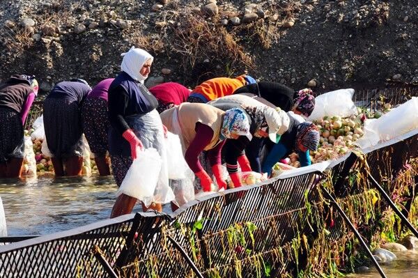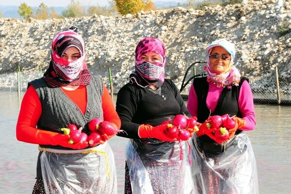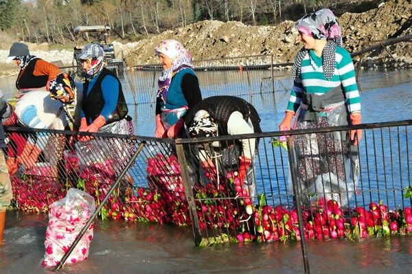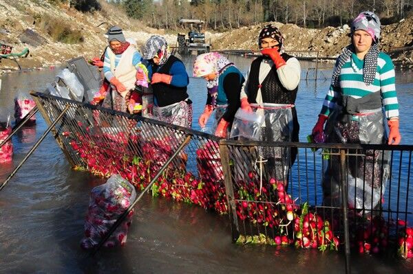 Türkiye'nin turp ihtiyacının büyük kısmının karşılandığı Kadirli ilçesindeki tarım işçileri, soğuğa rağmen ürünleri Savrun Çayı'nda yıkayarak geçimlerini sağlıyor. Çoğunluğunu kadınların oluşturduğu tarım işçileri, topraktan çıkarılan turpları, ilçede sıfırın altında seyreden sıcaklık değerlerine ve yağmura aldırış etmeden Savrun Çayı'nın soğuk suyunda temizliyor.