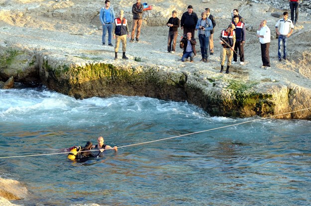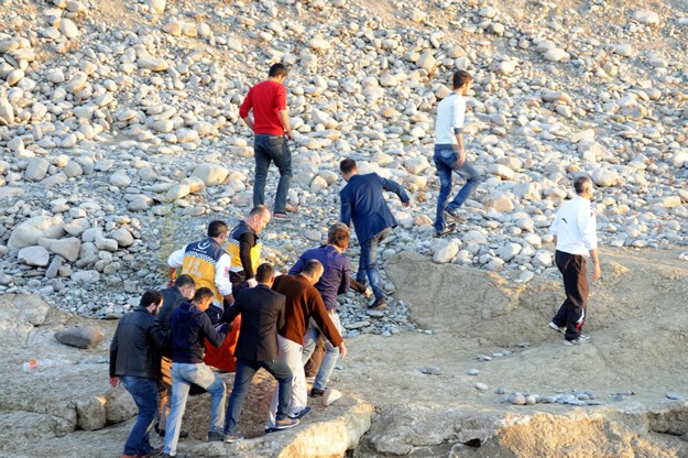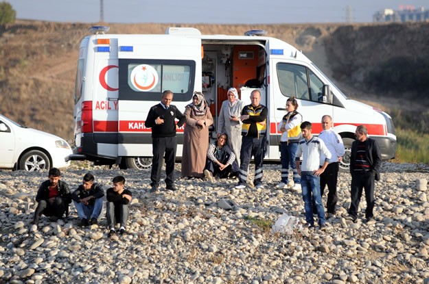 Kahramanmaraş'ta eşi ve çocuklarıyla birlikte balık tutarken dengesini kaybedip baraj göletine düşen kişi boğuldu. Suda kaybolan Muharrem Özdoğan'ın eşi Arife Özdoğan (sağ7), oturarak eşinin arama sudan çıkartılmasını bekledi.