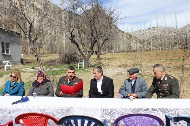 Tuğgeneral Soysal, Onikişubat ilçesine bağlı Kumarlı Mahallesi'nde yaşayan Şehit Daşcı'nın ailesini ziyaret ederek, burada bulunan köy koruyucularıyla da görüşüp hatıra fotoğrafı çektirdi.