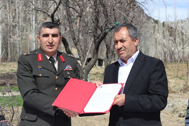 Gaziantep 5'inci Zırhlı Tugay Komutanı Tuğgeneral Murat Soysal, 18 Mart Şehitler Günü nedeniyle Türkiye'nin farklı kentlerinden şehit ailelerini Ankara'da misafir edeceği program kapsamında, Genelkurmay Başkanı Orgeneral Hulusi Akar'ın davetiyesini şehit köy korucusu İsmail Daşcı'nın Kahramanmaraş'taki ailesine teslim etti.
