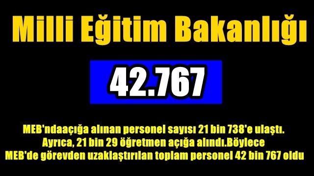 FETÖ darbe girişimi sonrası birçok kamu kurum ve kuruluşunda yürütülen çalışmalar kapsamında bugüne kadar 45 bin 954 personel görevden uzaklaştırıldı.