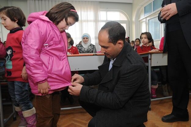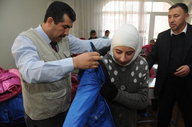İnsan Hak ve Hürriyetleri (İHH) İnsani Yardım Vakfı tarafından, Kahramanmaraş'ta Suriyeli öğrencilere mont yardımında bulunuldu.