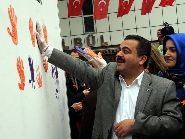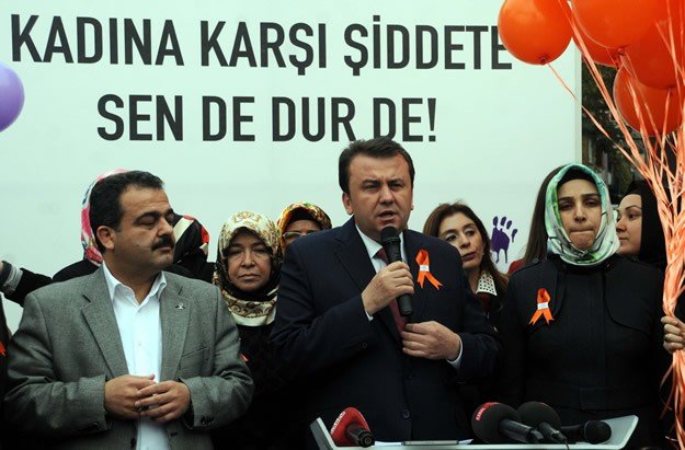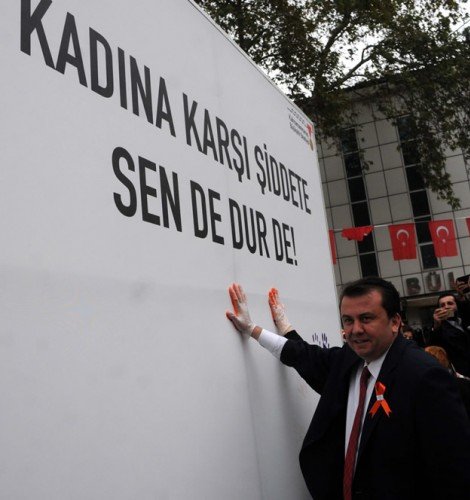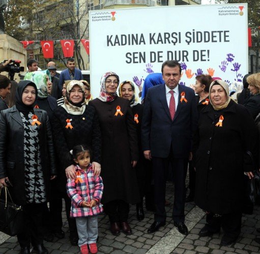 Kahramanmaraş Büyükyehir Belediyesi tarafından “Kadına Yönelik Şiddete Karşı Uluslararası Mücadele Günü” münasebetiyle ‘Kadına Şiddete Sende dur de’ programda düzenledi. Programa katılan Kahramanmaraş Büyükşehir Belediye Başkanı Fatih Mehmet Erkoç (ortada) bir konuşma yaptı.