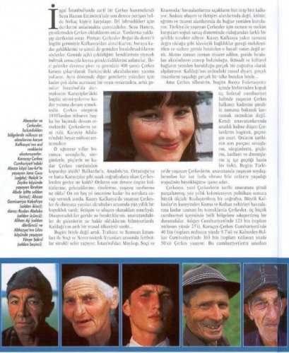Korkunç savaşlarla, kıtlık ve salgınlarla kırıldılar. Dağlardan, vadilerden, köylerden koparılıp düzlüklere, bataklık ovalara sürüldüler. Savaş bittiğinde de yurtlarından sökülüp atıldılar. Yüz binler, ölüm yolculuklarından geçerek Osmanlı ülkesine sığındılar. Yurtları Kafdağı’nın ardındaki bir masal ülkesine dönüştü. Gelecek yıl, Çerkesler ve diğer Kafkas halklarının toptan sürgüne tabi tutulmalarının 150. yıldönümü. Atlas; Karaçay-Çerkes, Kabardey Balkar ve Adıgey cumhuriyetlerinde Çerkeslerin konuğu oldu.