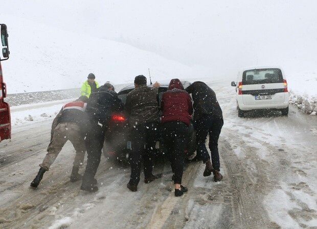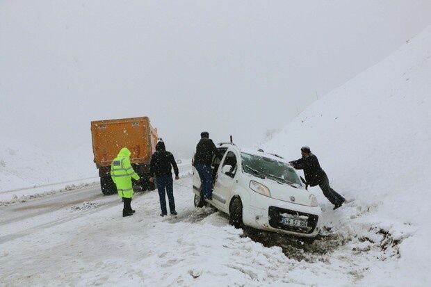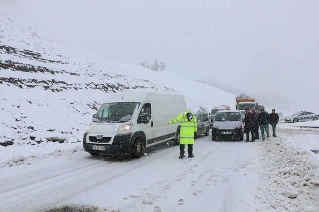 Kahramanmaraş-Kayseri Karayolu Yoğun Kar yağışı nedeniyle trafik durmuş durumda