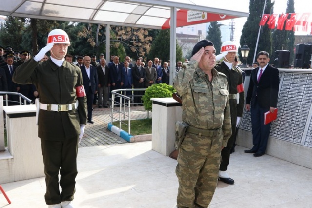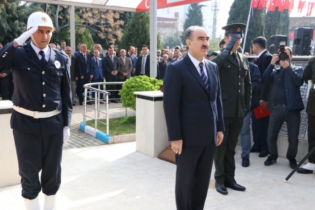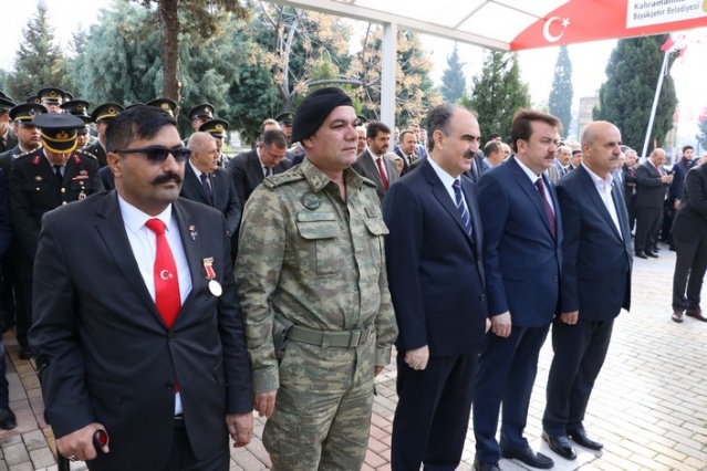 Şeyhadil Mezarlığı’nda yer alan Şehitlik Anıtı’nda düzenlenen tören çelenklerin sunulmasıyla başladı. Bir dakikalık saygı duruşu, İstiklal Marşı’nın okunması ve saygı atışının yapılmasının ardından tören, Kahramanmaraş Valisi Vahdettin Özkan’ın, günün anlam ve önemini belirten konuşmasıyla devam etti.