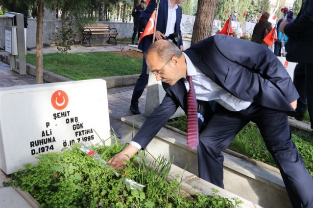 Daha sonra Kahramanmaraş Valisi Vahdettin Özkan ve beraberindeki protokol üyeleri, şehir mezarlarını ziyaret ederek, çiçek bıraktı. Kur’an tilaveti ve yapılan duanın ardından program sona erdi.