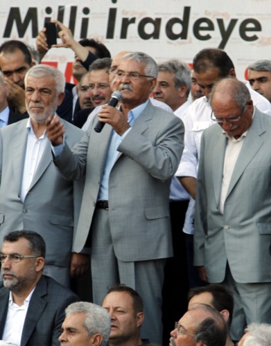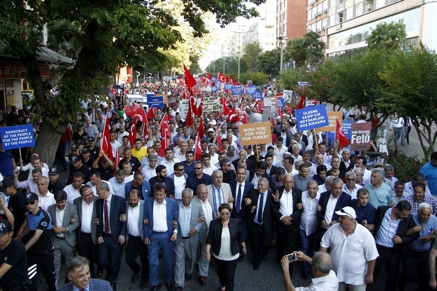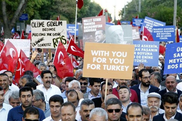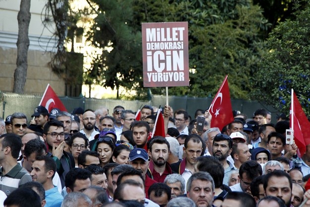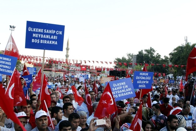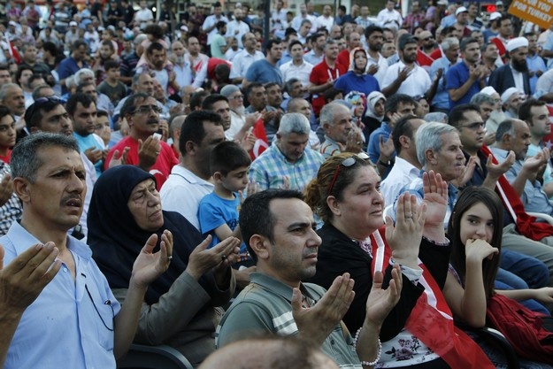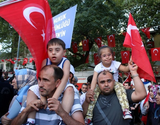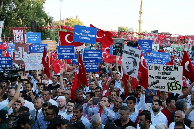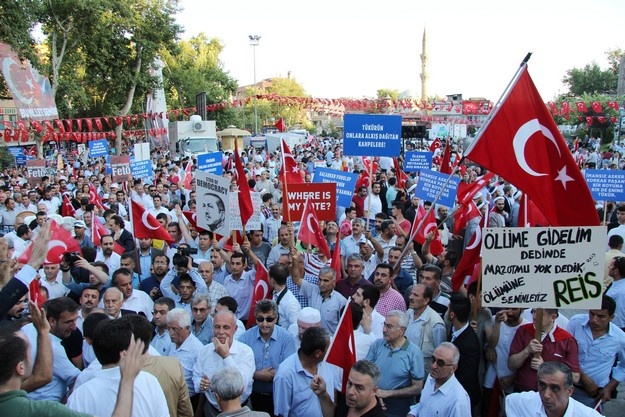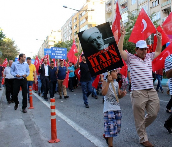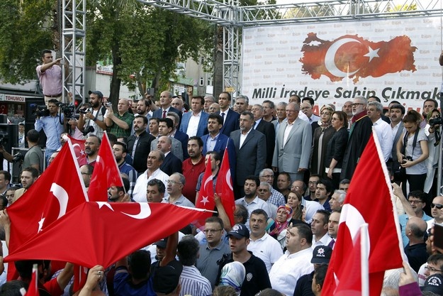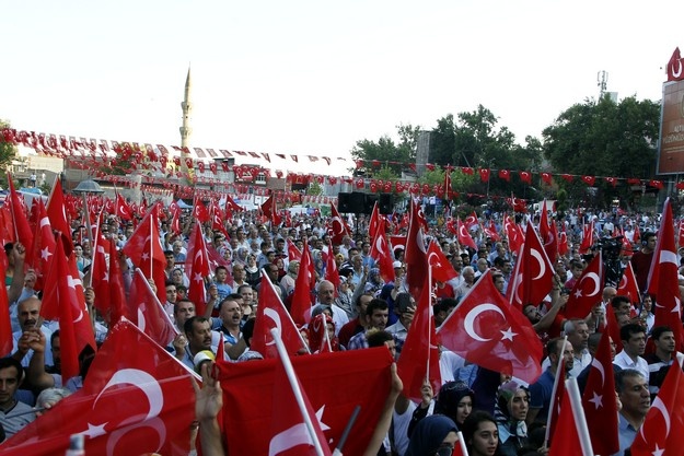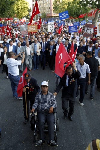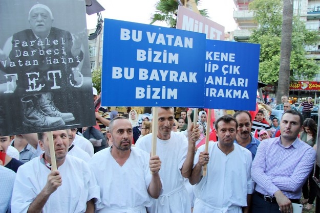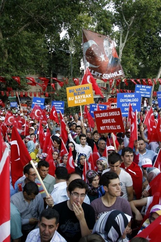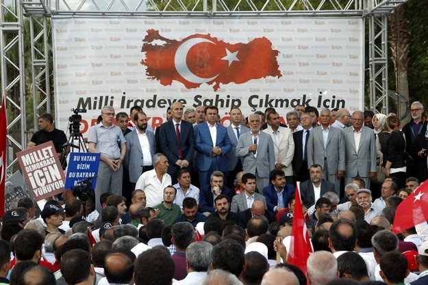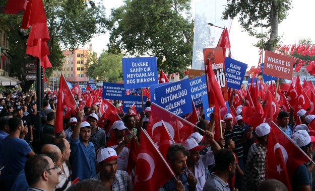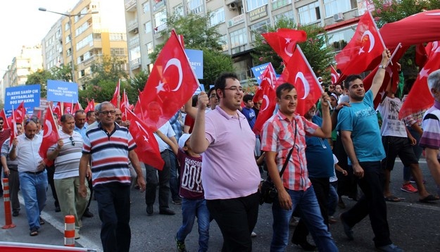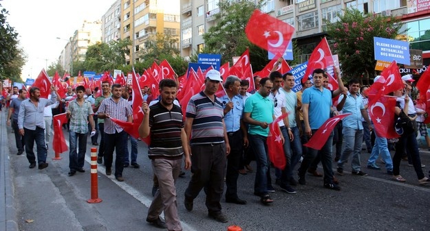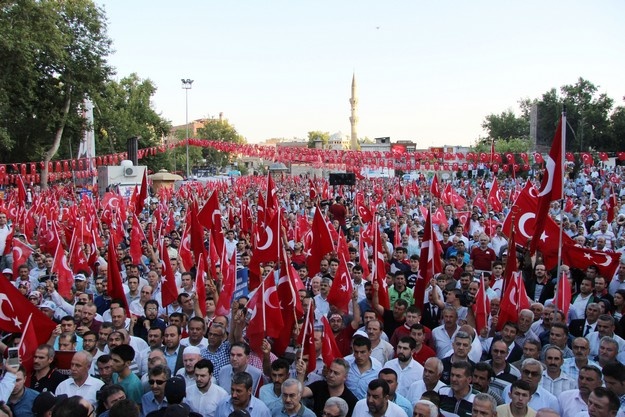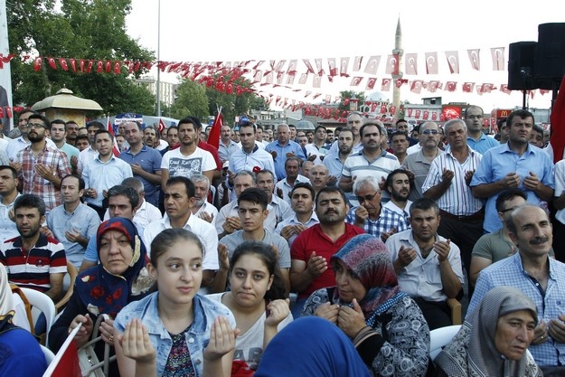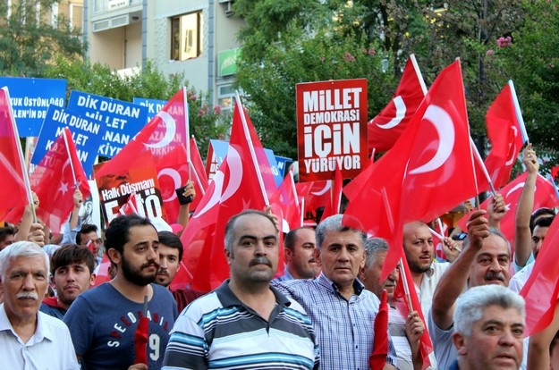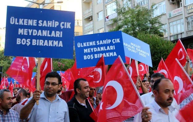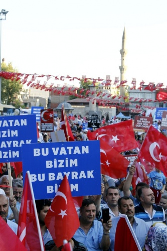 Fethullahçı terör örgütü tarafından yapılan darbe kalkışmasının püskürtülmesiyle demokrasi nöbetinde Kahramanmaraş kent meydanında bir araya gelen binlerce kişi, darbecilere karşı tek yürek oldu.