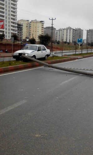 Kahramanmaraş'ta Tekerek yolu üzerinde 46 TD 301 plakalı araç sürücüsünün direksiyon hakimiyetini kaybetmesi üzerine elektrik direğine çarptı. Çarpmanın etkisiyle elektrik direği yola devrilirken, o anda yoldan araç geçmiyor olması büyük bir faciayı da önledi.
