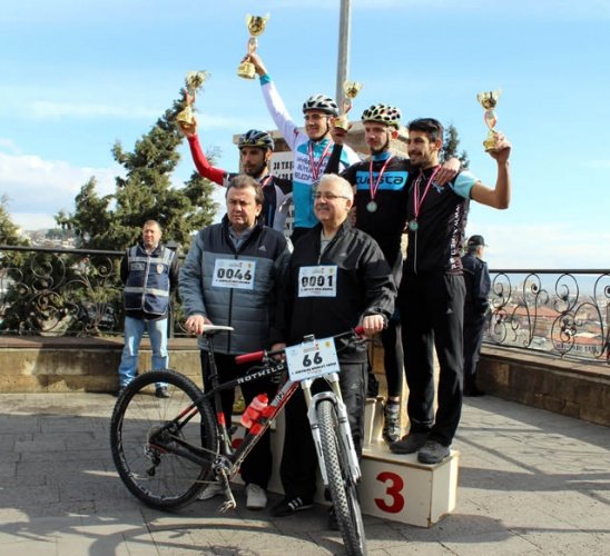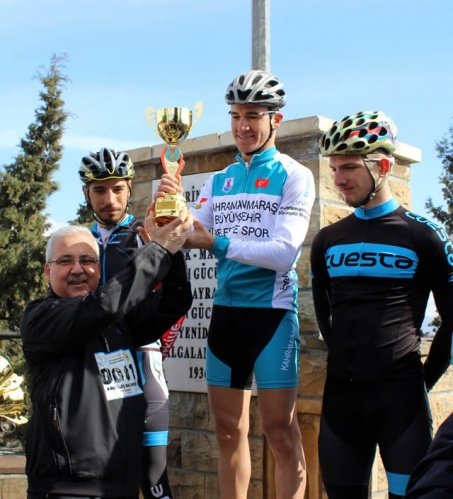 Kahramanmaraş'ın düşman işgalinden kurtuluşunun 96. yıl dönümü etkinlikleri çerçevesinde bisiklet yarışı ve kurtuluş koşusu yapıldı. Bisiklet yarışında birinci olan Veysel Çıkmaz'a (sağ-2) kupasını Kahramanmaraş Valisi Mustafa Hakan Güvençer (solda) verdi.