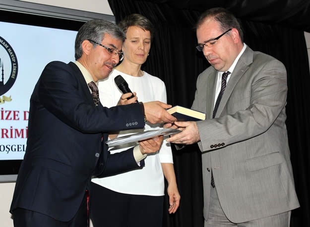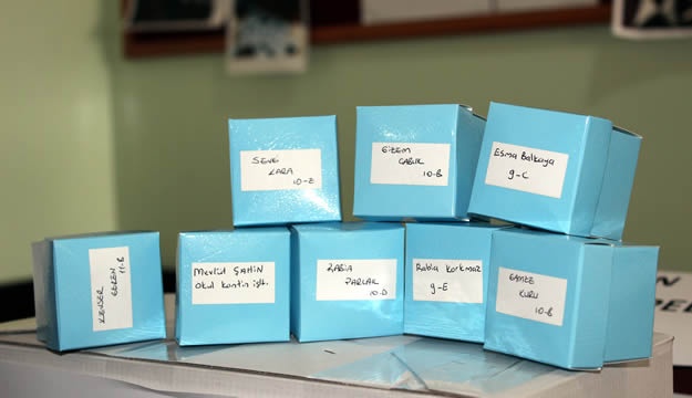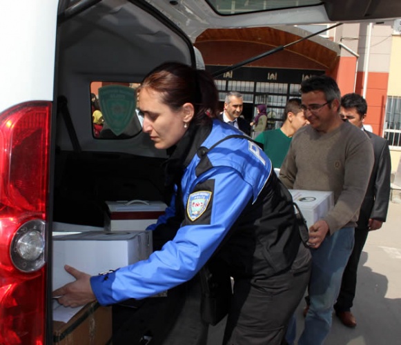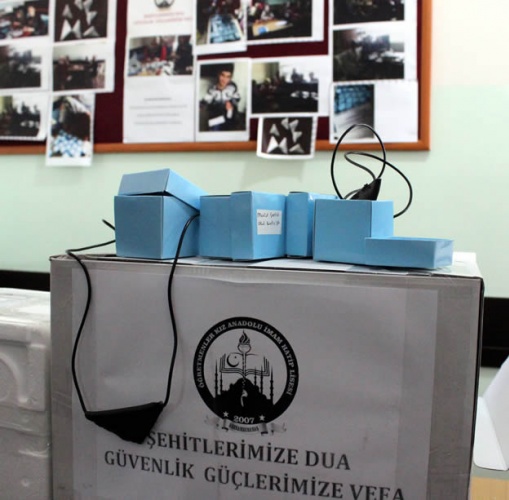Kahramanmaraş Öğretmenler Kız Anadolu İmam Hatip Lisesi öğrencileri, "Şehitlerimize Dua, Güvenlik Güçlerimize Vefa" sloganıyla başlattıkları kampanya kapsamında, Şırnak'ın Beytüşşebap ve Diyarbakır'ın Sur ilçelerindeki güvenlik güçlerine, içine ayet yazdıkları 100 cevşen ve yöresel yemekler gönderdi. Okul Müdürü Ahmet Dertli (sol1) tarafından Beytüşşebap ilçesine gönderilmek üzere Onikişubat Kaymakamı Mehmet Türköz'e (sol2) Kur'an-ı Kerim ve mektuplar verildi.