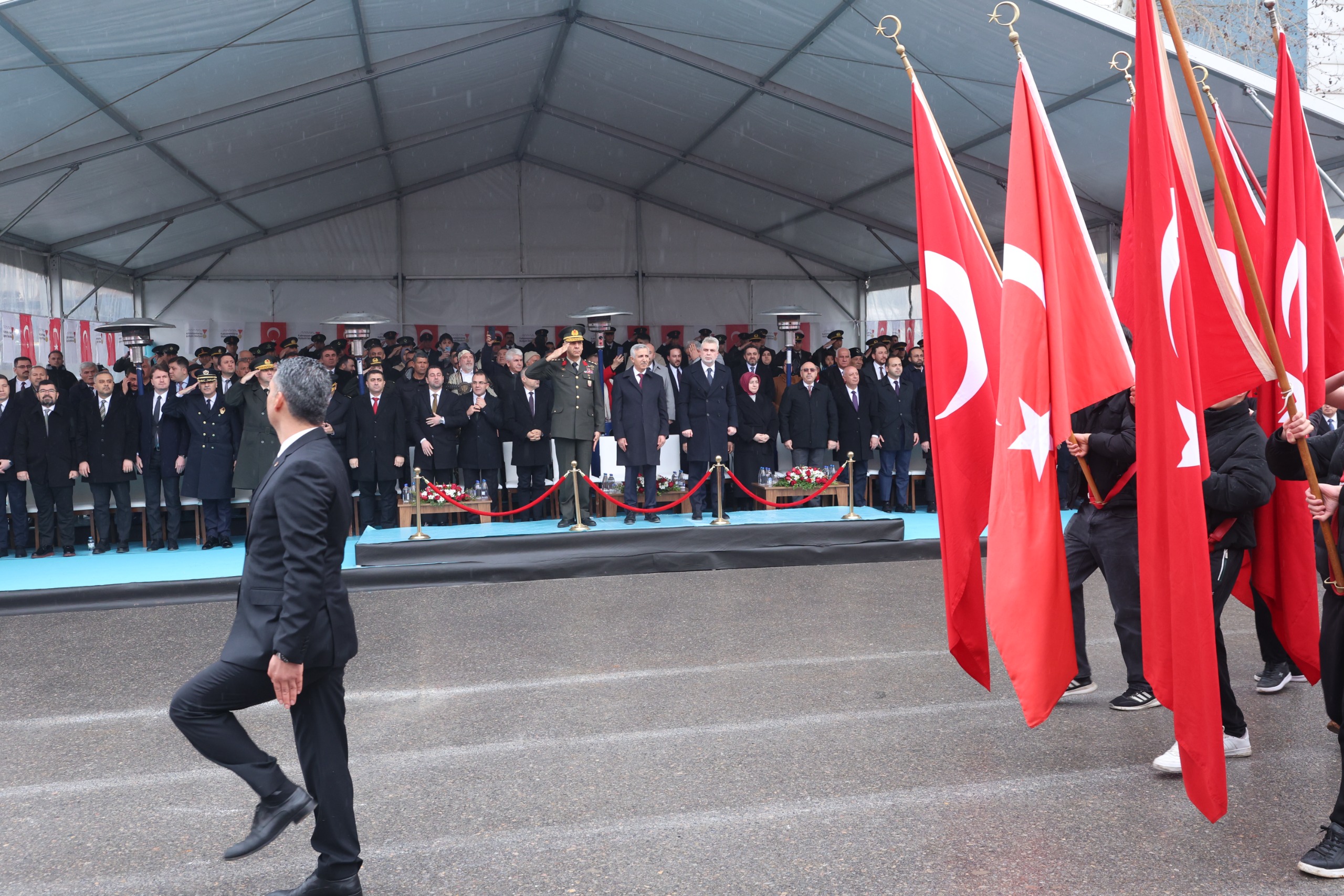 İstiklal Madalyası’nın Türk bayrağına toka edilmesi, Valilik Meydanı’nda gerçekleştirilen saygı duruşu ve İstiklal Marşı’nın okunmasıyla devam eden törende Kur’an-ı Kerim tilaveti ve dualar okundu. Ardından “Hür yaşadım, hür yaşarım” temalı kısa film gösterimi yapıldı.