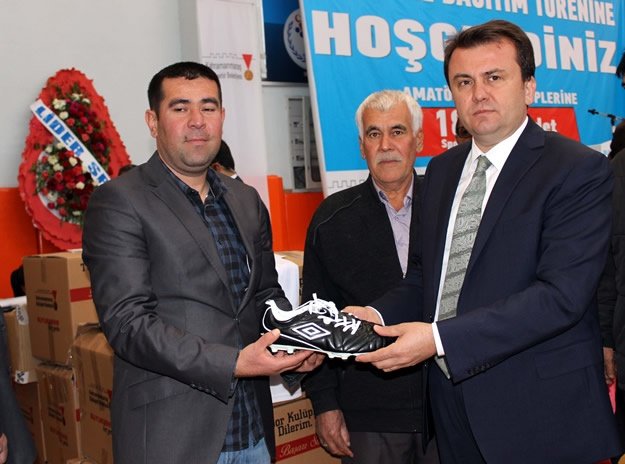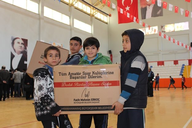 Kahramanmaraş Büyükşehir Belediyesi, 52 amatör spor kulübüne malzeme desteğinde bulundu. Büyükşehir Belediye Başkanı Fatih Mehmet Erkoç (sağda), Osman Sayın Spor Salonu'nda düzenlenen törende, malzemeleri dağıttı.