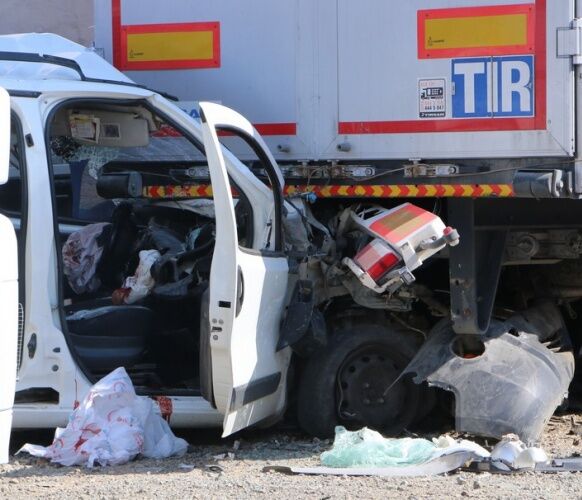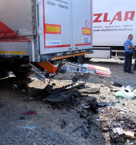 Kahramanmaraş'ta hafif ticari aracın park halindeki tıra çarpması sonucu 2 kişi öldü, 2 kişi yaralandı.