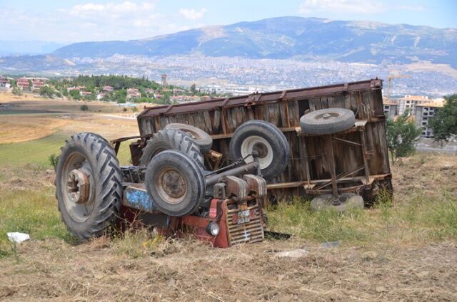 Kahramanmaraş'ta devrilen kum yüklü traktörün altında kalan sürücü hayatını kaybetti.