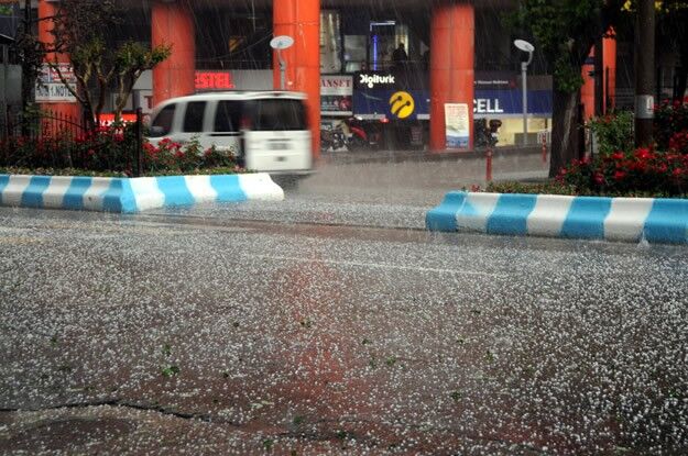 Kahramanmaraş'ta dolu ve sağanak, hayatı olumsuz etkiledi.