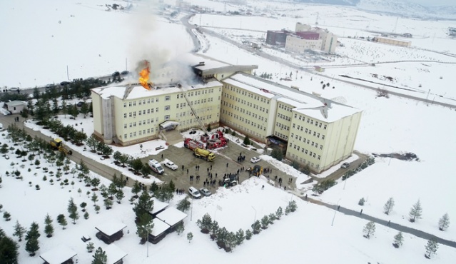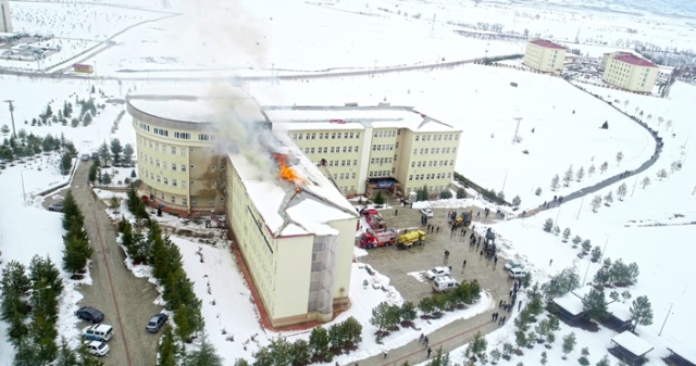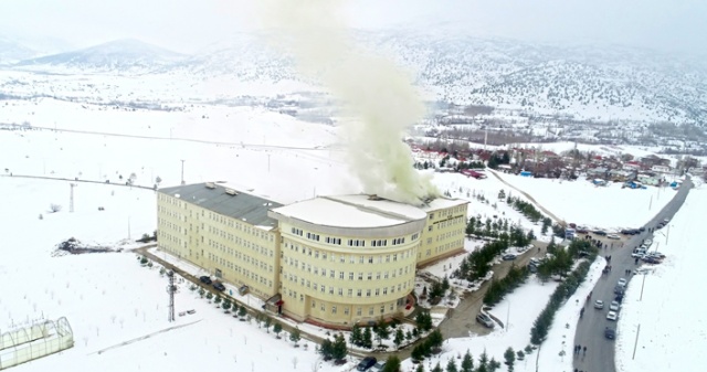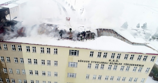 Kahramanmaraş Sütçü İmam Üniversitesi (KSÜ) Göksun Meslek Yüksekokulu'nun çatısında çıkan yangın hasara neden oldu.