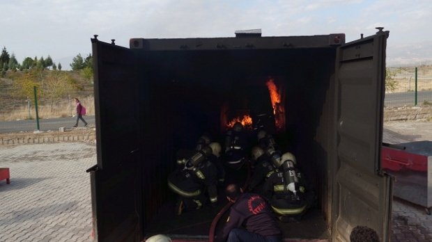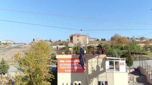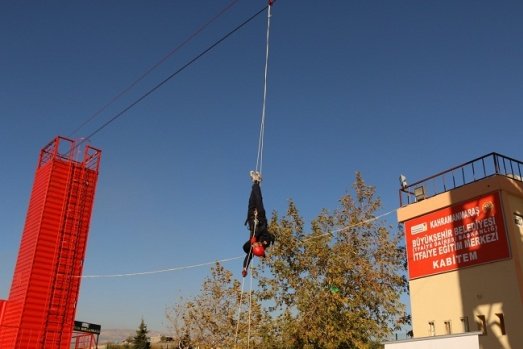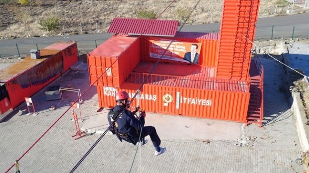 Kahramanmaraş’ta itfaiyecilerden nefes kesen tatbikat