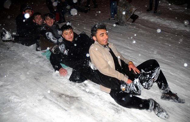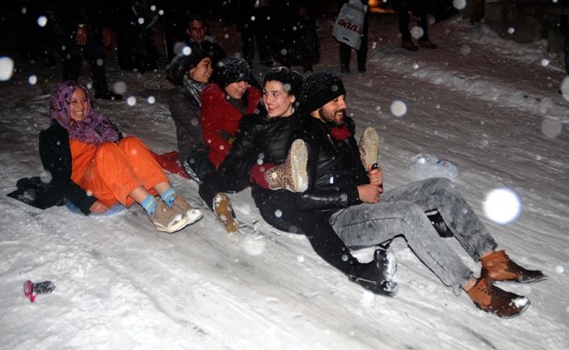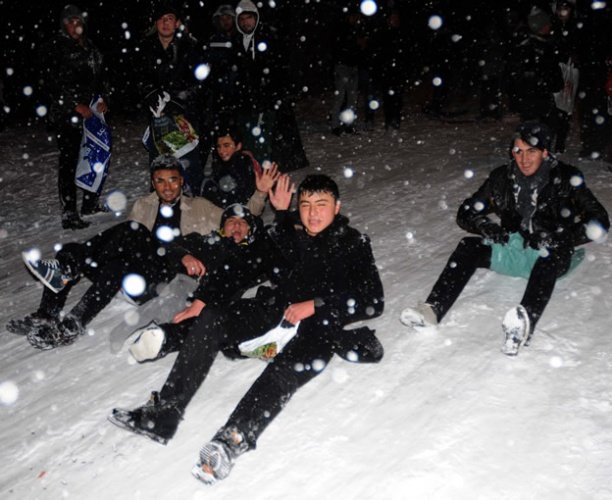 Kahramanmaraş'ta kar yağışını eğlenceye dönüştürdüler