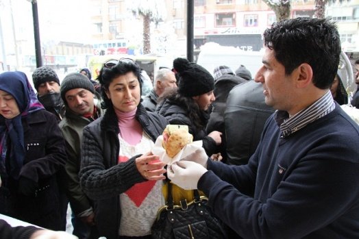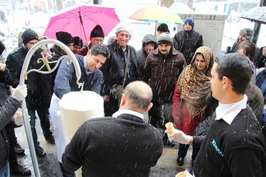 Kahramanmaraş'ta karın altında ekmek arası dondurma dağıtıldı