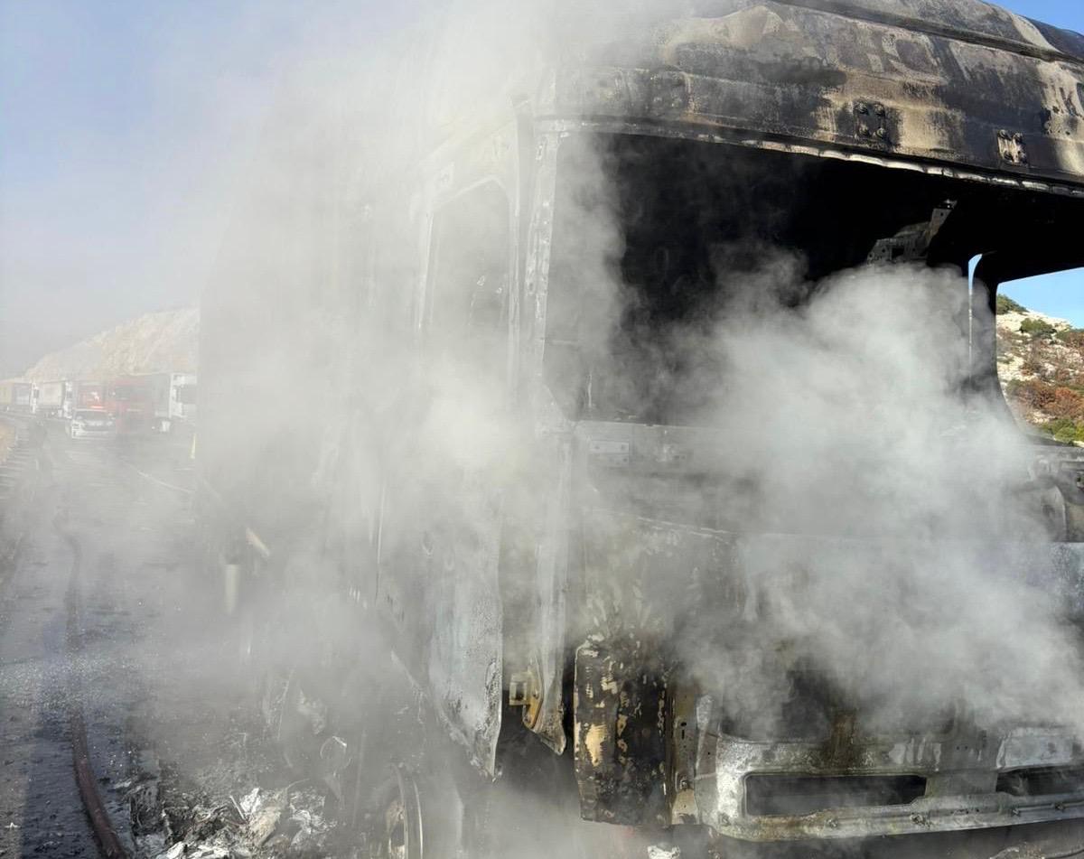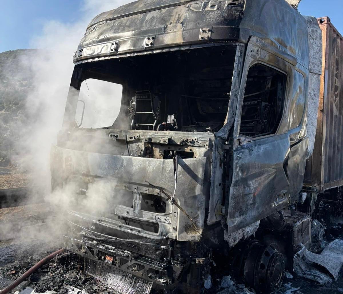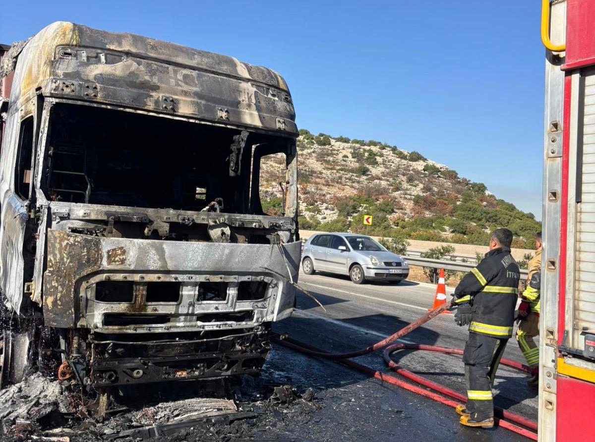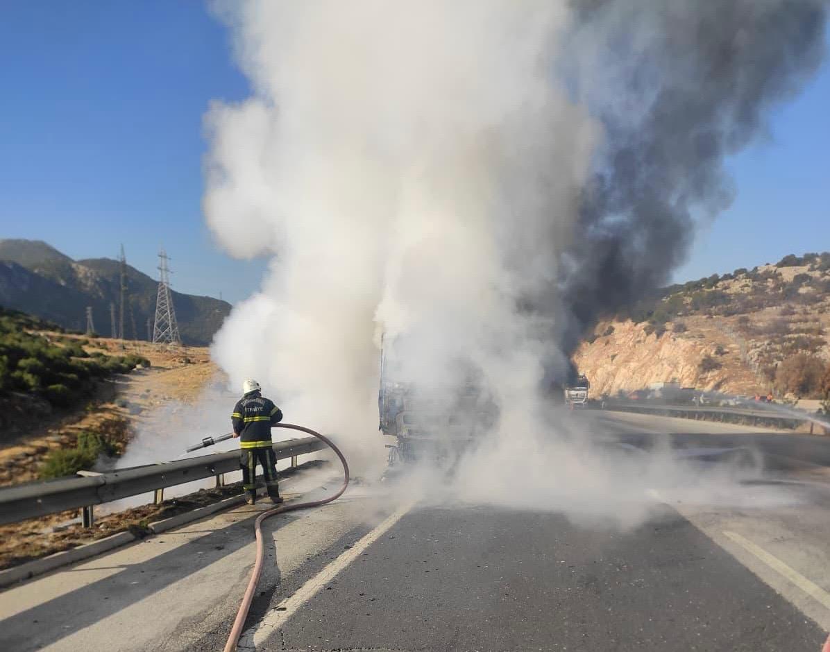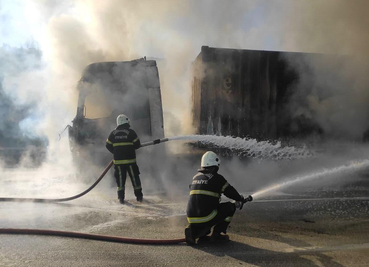 Ekiplerin yoğun çabasıyla yangın kontrol altına alınırken, TIR ve dorsesi tamamen kullanılamaz hale geldi.