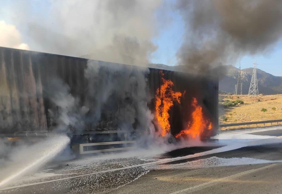 Kahramanmaraş’ın Narlı otoyolunda hareket halindeyken alev alan bir TIR, sürücüsüne ve çevredeki araçlara korku dolu anlar yaşattı.