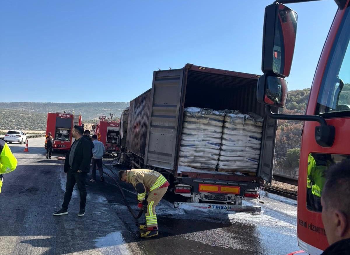 Yangın nedeniyle otoyolda trafik kısa süreli olarak durduruldu, soğutma çalışmalarının ardından yol yeniden ulaşıma açıldı.