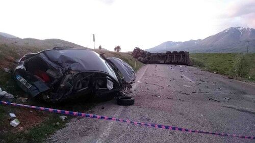 Kahramanmaraş'ın Göksun ilçesinde kontrolden çıkan otomobil, çift şeritli yoldan karşı şeride geçmesi sonucu TIR'la çarpıştı. Kazada bir çocuk kaybetti, 4 kişi yaralandı.