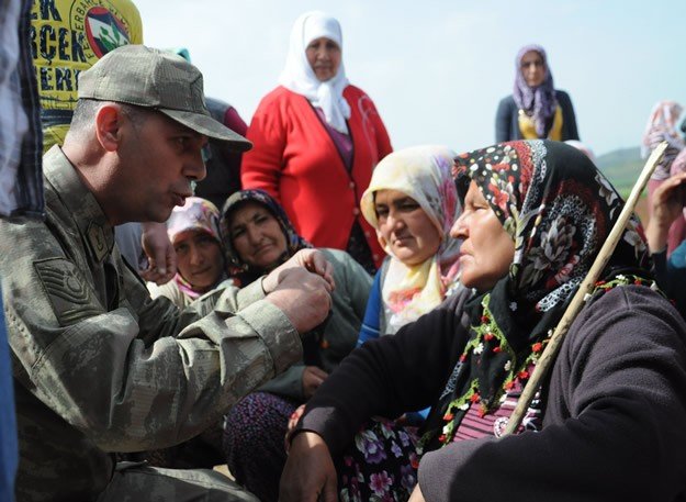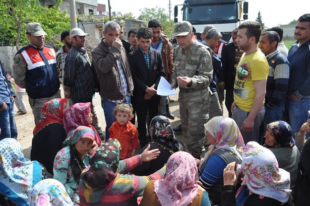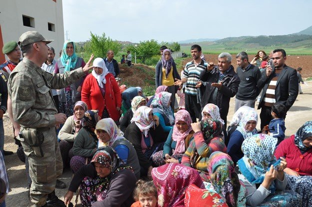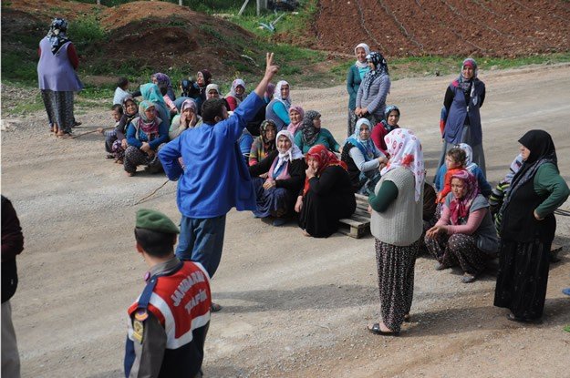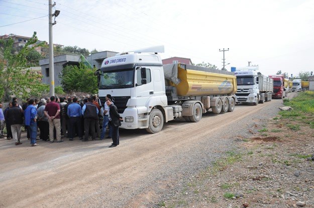 Türkoğlu ilçesinde, taş ocağından yük taşıyan kamyonların çevre kirliliğine neden olduğunu öne süren bir grup, Kılılı Mahallesi'nde oturma eylemi yaptı.