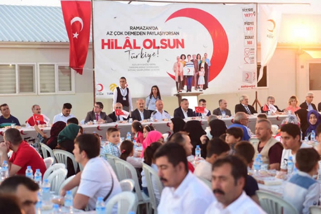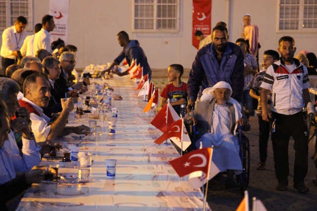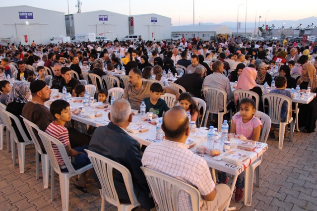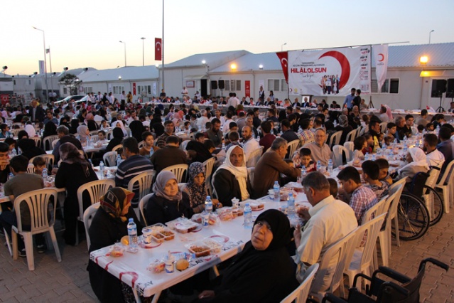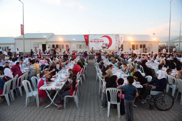 Kahramanmaraş'taki konteyner kentte yaşayan Suriyelilere, Türk Kızılayı ve Göç İdaresi Genel Müdürlüğü tarafından iftar verildi.
